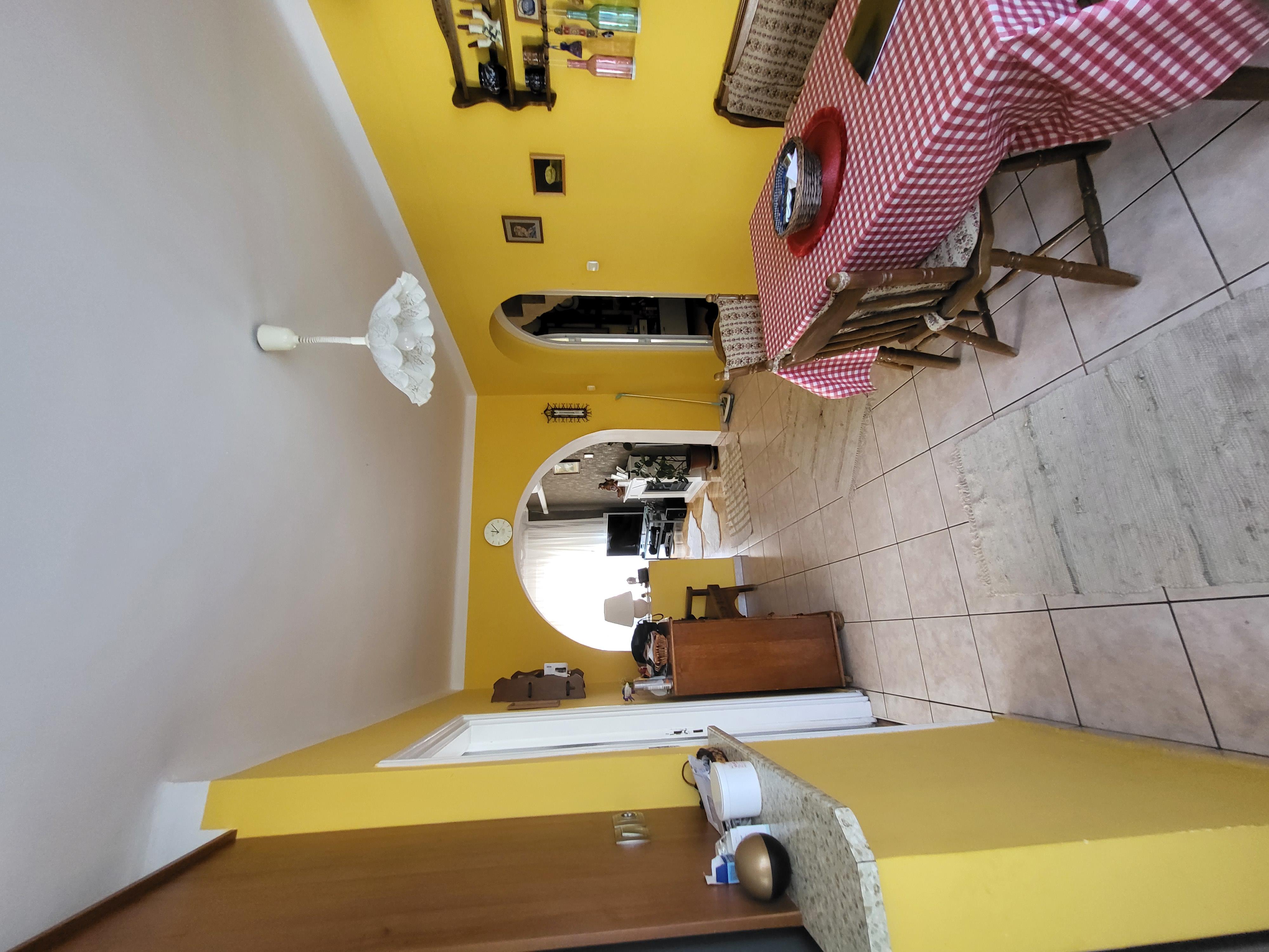 - középső szinten a folyosón vendég wc, kis gardrób , egy ajtóval leválasztott részen konyha, étkező, egy nagyméretű nappali egy légtérben, és egy hálószoba