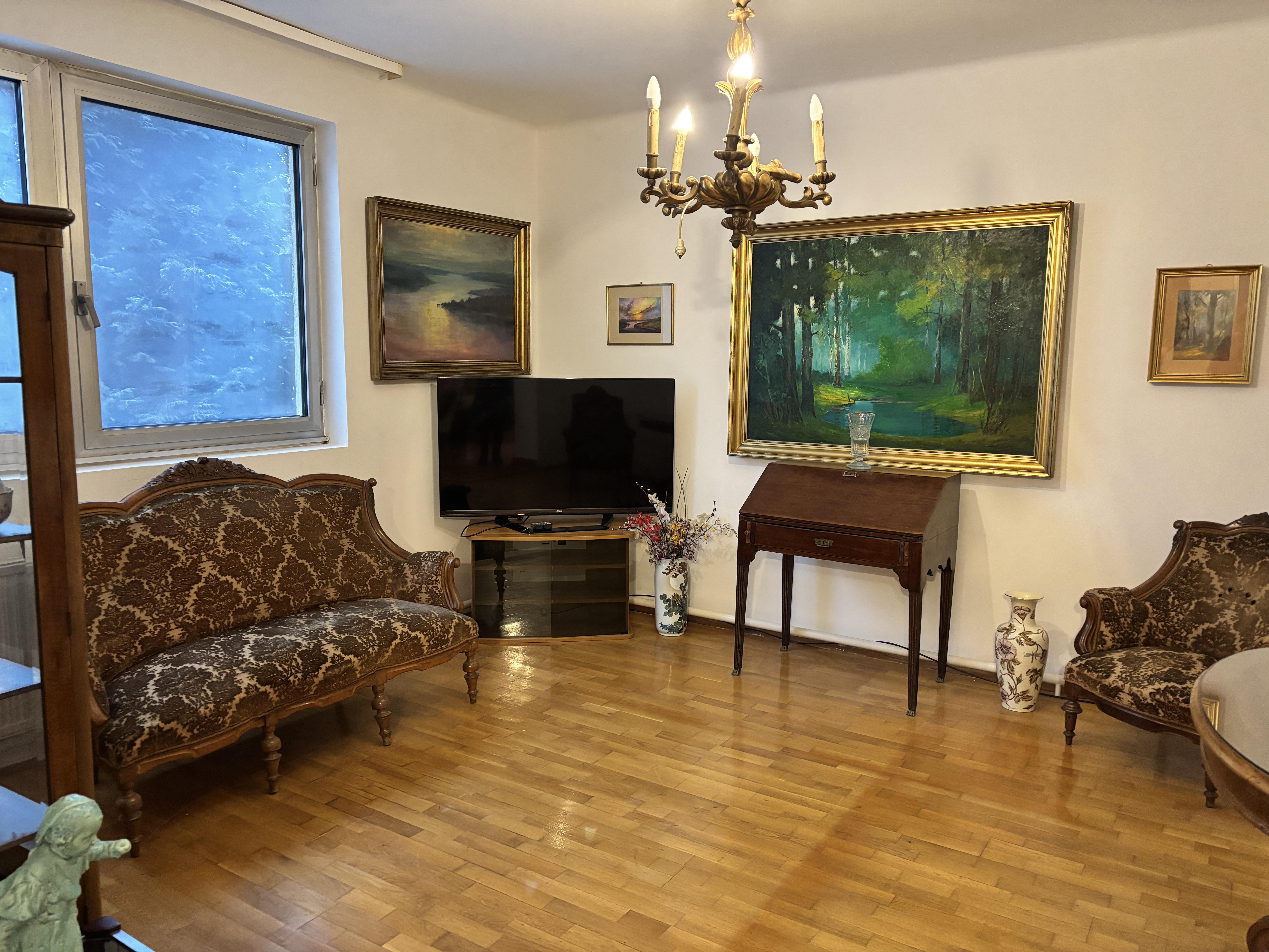 - burkolat az ingatlanban : járólap és eredeti felújított parketta vegyesen