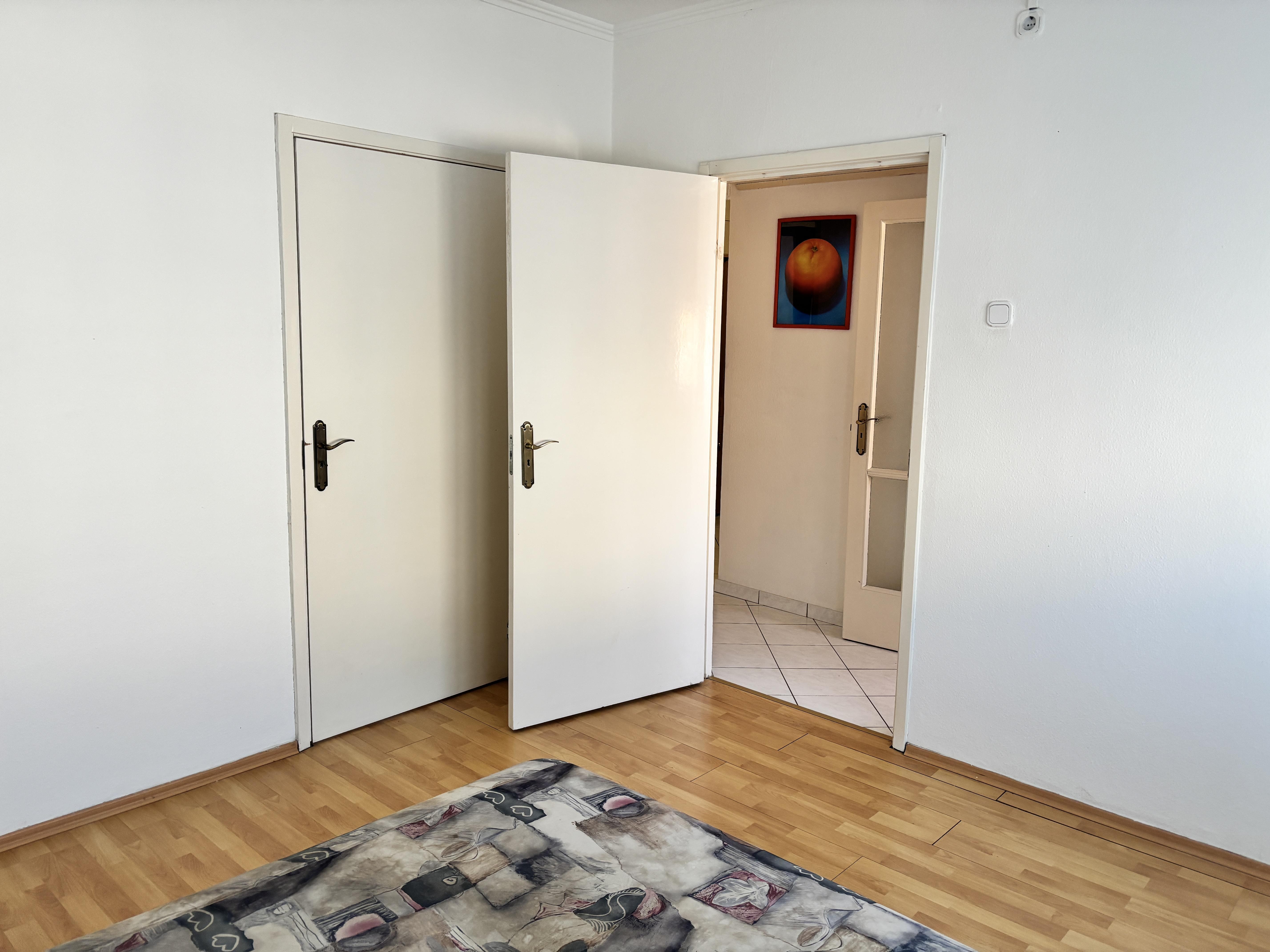 - az előszobában egy tágas beépített szekrény segít a tárolásban